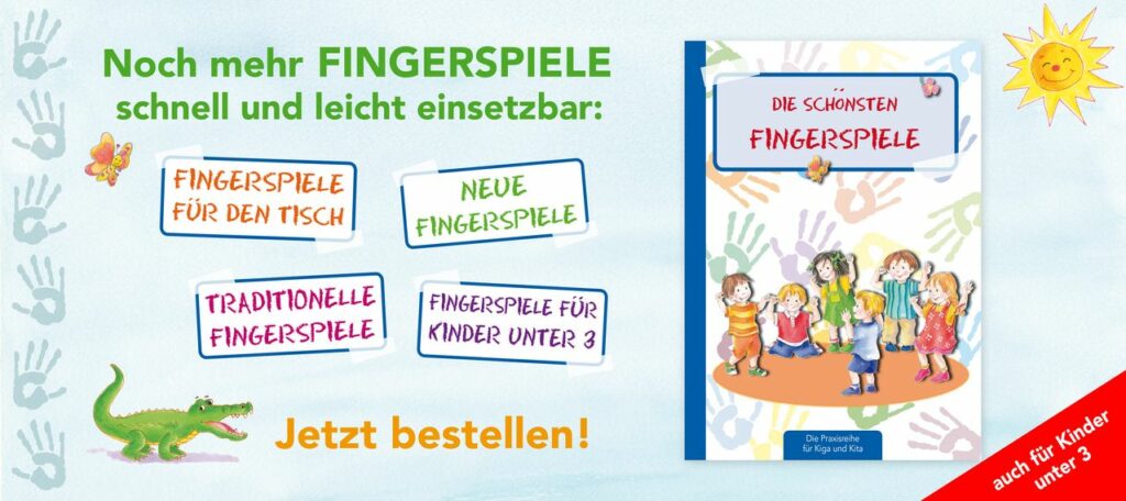 Hat Ihnen die "Die Spinne Humpelbein – Ein Fingerspiel" gefallen? Mehr davon finden Sie in dem Buch "Die schönsten Fingerspiele" vom Kaufmann Verlag. Gleich hier bestellen!
