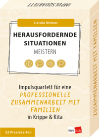Kinder zeigen ihr Befinden, ihre Bedürfnisse und Gefühle oft über ihr Verhalten. Dieses Praxiskartenset unterstützt pädagogische Fachkräfte dabei, herausforderndes Verhalten in der Kita zu erkennen, zu verstehen und kompetent zu begleiten.