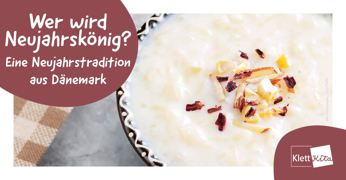Besprechen Sie mit den Kindern die dänische Tradition. Die Kinder sollen darauf achten, die Mandel nicht zu essen, sofern sie sie finden, sondern die Mandel neben die Schüssel zu legen. Schließlich ist die Mandel ja der Beweis, dass das Kind Neujahrskönig ist. Bei jüngeren Kindern besteht Verschluckungsgefahr!