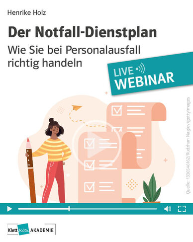 Jede Leitung weiß, wie wichtig es ist, einen guten Dienstplan zu schreiben. Aber was, wenn im Alltag immer mehr Personal ausfällt, Engpässen herrschen und der Dienstplan so nicht mehr funktioniert? Dann muss ein Notfall-Dienstplan her. In diesem Webinar erfahren Sie, wie Sie einen Notfallplan schreiben, welche Maßnahmen greifen und was Sie im Vorfeld erarbeiten müssen. Damit der nächste Ausfall nicht zum Notfall wird.