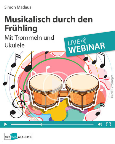 In unserem Frühlings-Trommel-Webinar „Get Into The Groove“ lernen wir ein paar neue Rhythmen. Wir begleiten auf der Ukulele ein Kindergarten-Frühlingslied und trommeln einen passenden Groove dazu! Außerdem gibt es leichte Rhythmen und Arrangements, mit denen wir ein Trommellied begleiten können!